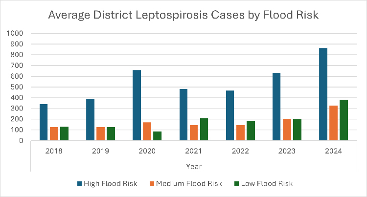 Figure 2: Average District Leptospirosis Cases by Flood Risk