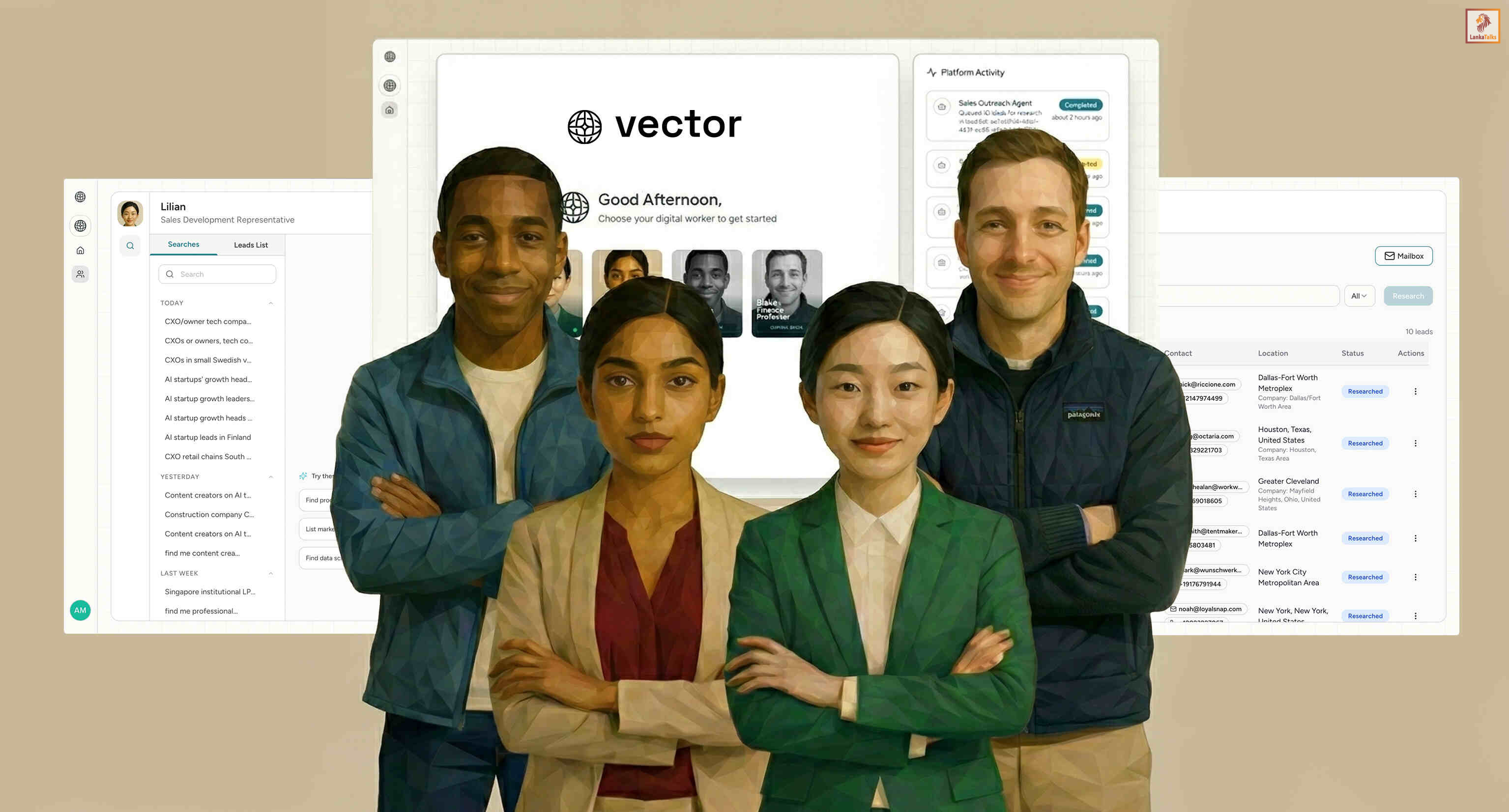 Lilian and Rhea are Vector Agents’ first publicly available digital employees. Lilian is an AI SDR that defines your ICP using hundreds of data points and intent signals, researches each account to generate deep prospect intelligence, and runs highly personalized outreach campaigns 24/7. Rhea is an always-on Customer Success Agent that understands your products and processes, handles customer requests instantly, and escalates complex cases with full context via text, image and voice across 80+ languages, acting as a reliable front line for support operations.